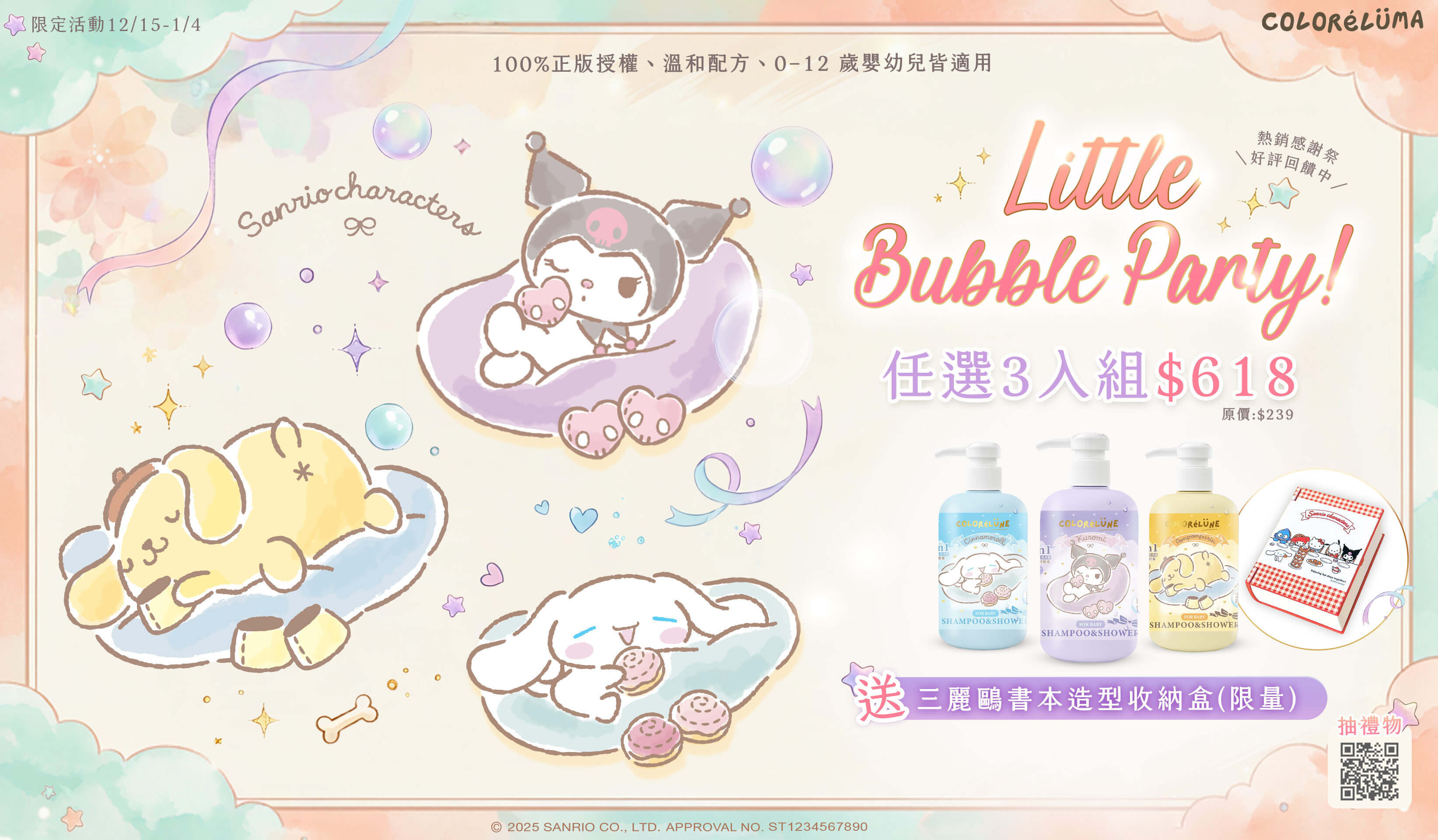 限定活動|適合0-12歲嬰幼兒|三麗鷗酷洛米保濕3in1洗髮沐浴露500ml-鼠尾草舒眠香
